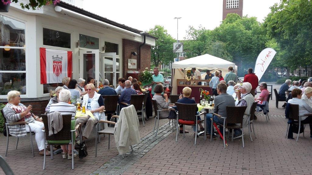 Am 15. Juli war es soweit, der Osterfelder Bürgerring lud seine Mitglieder und Gäste zu einem Grillabend ein. Ein lauer Abend, Urlaubsfeeling und das mitten in der Stadt, am Markt in Osterfeld? All das war möglich bei gut gegrillten Spezialitäten, leckeren Salaten gekühlten Getränken schön gedeckten Tischen und freundlichem Service. Auch hier war uns das Bistro Jederman ein zuverlässiger Partner. Den zahlreichen Mitgliedern des Osterfelder Bürgerring ging der Gesprächsstoff nicht aus. Gäste einiger Mitglieder, die nicht aus Oberhausen stammten, machten uns erst einmal bewusst, wie schön Osterfeld ist. Ein wirklich schöner, entspannter Abend, wie wir meinen. Wir freuen uns auf ein nächstes Treffen.