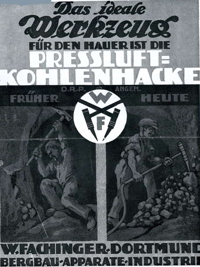Es laufen auch Versuche mit Preßluft-Kohlenhacken, die sich jedoch gegenüber dem Abbauhammer nicht durchsetzen können, obgleich der Hersteller die Geräte in einer Anzeige als "das ideale Werkzeug für den Hauer" bezeichnet.